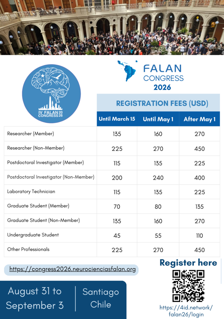 On behalf of the Organizing Committee, we are pleased to announce that registration for the IV FALAN Congress 2026 is now officially open.